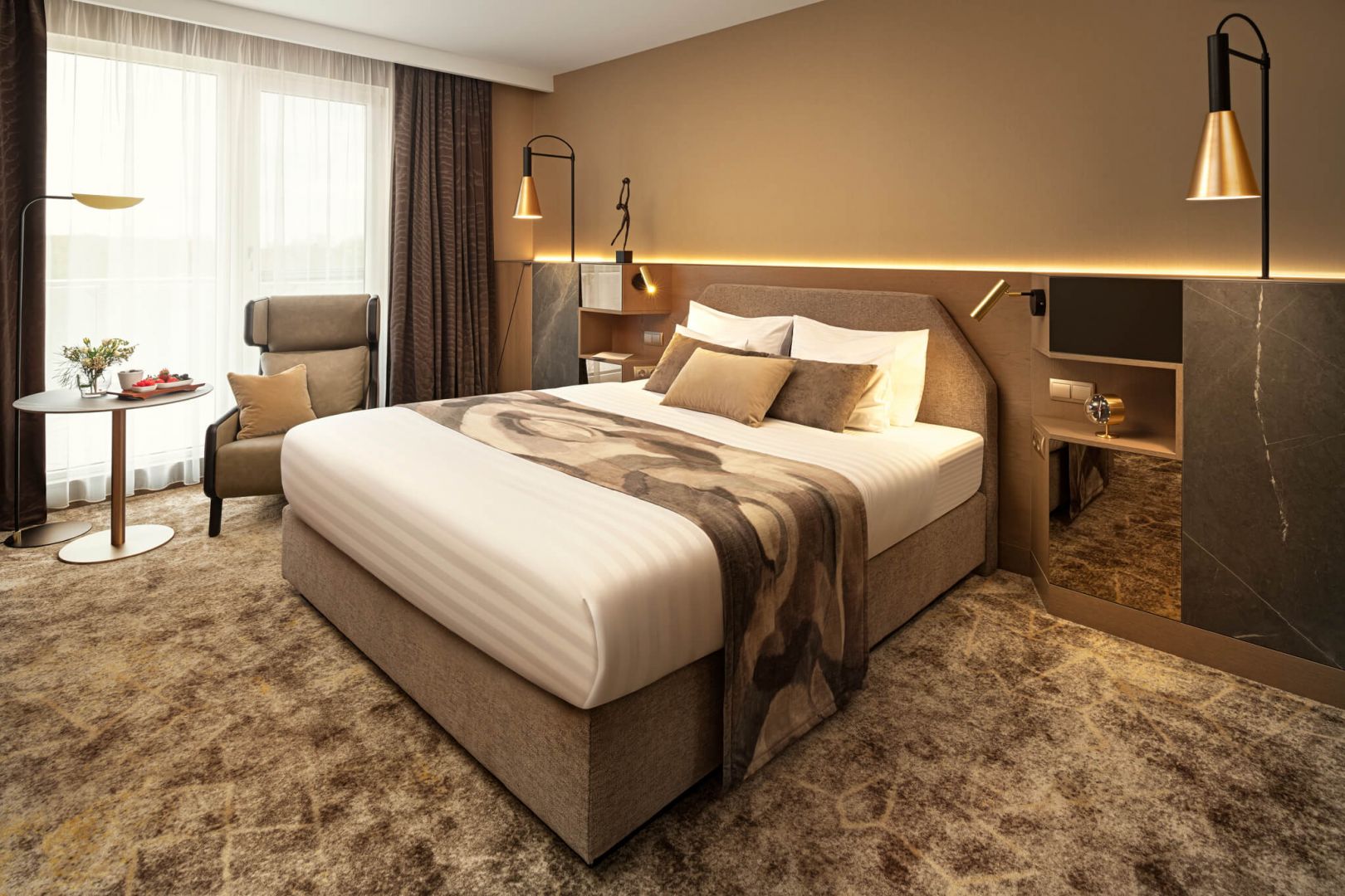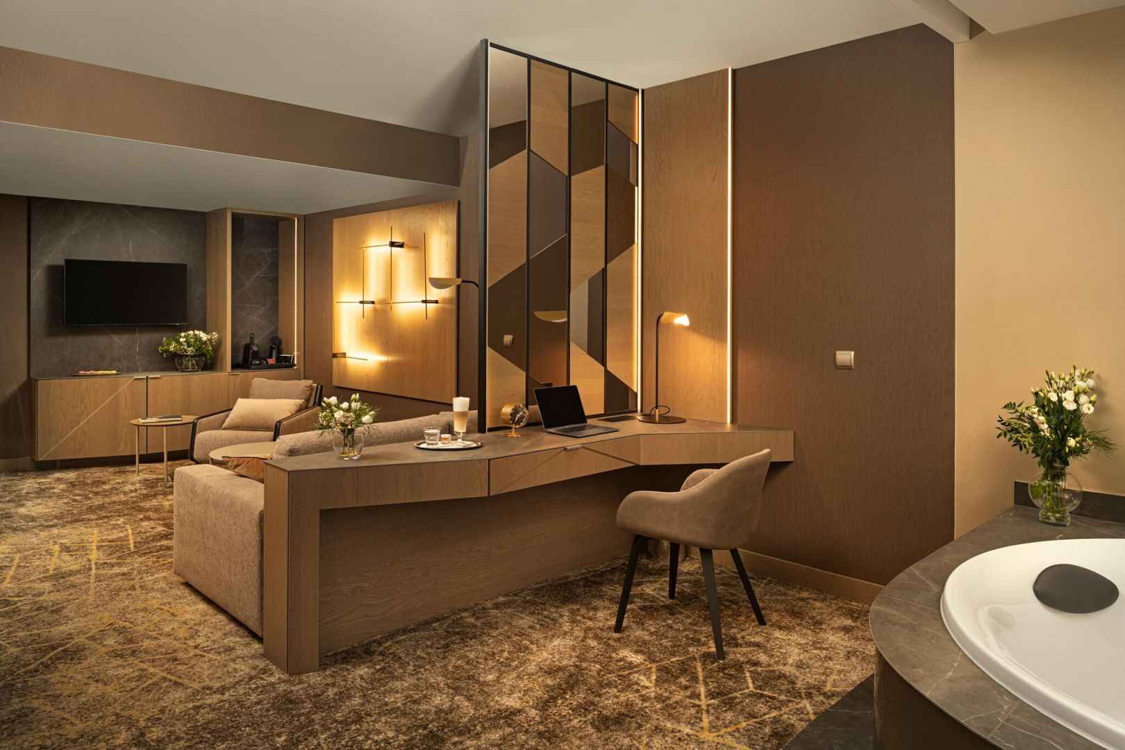 - A felújításra kerülő 5 csillagos hotel 200 szobájának beépített bútorainak: szekrények, asztalok, éjjeli szekrények, falpanelek, ágyfejvégek, tükrök gyártása és beépítése