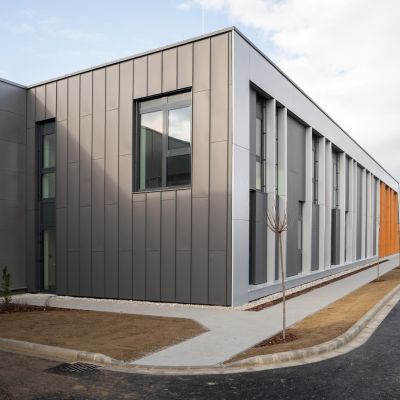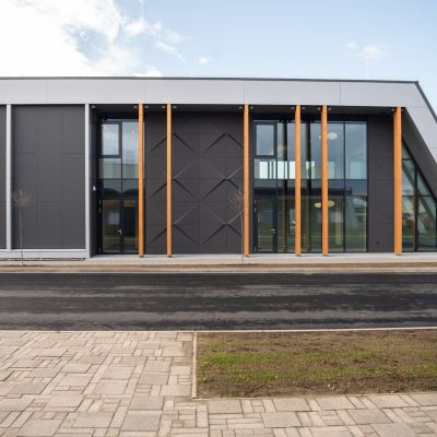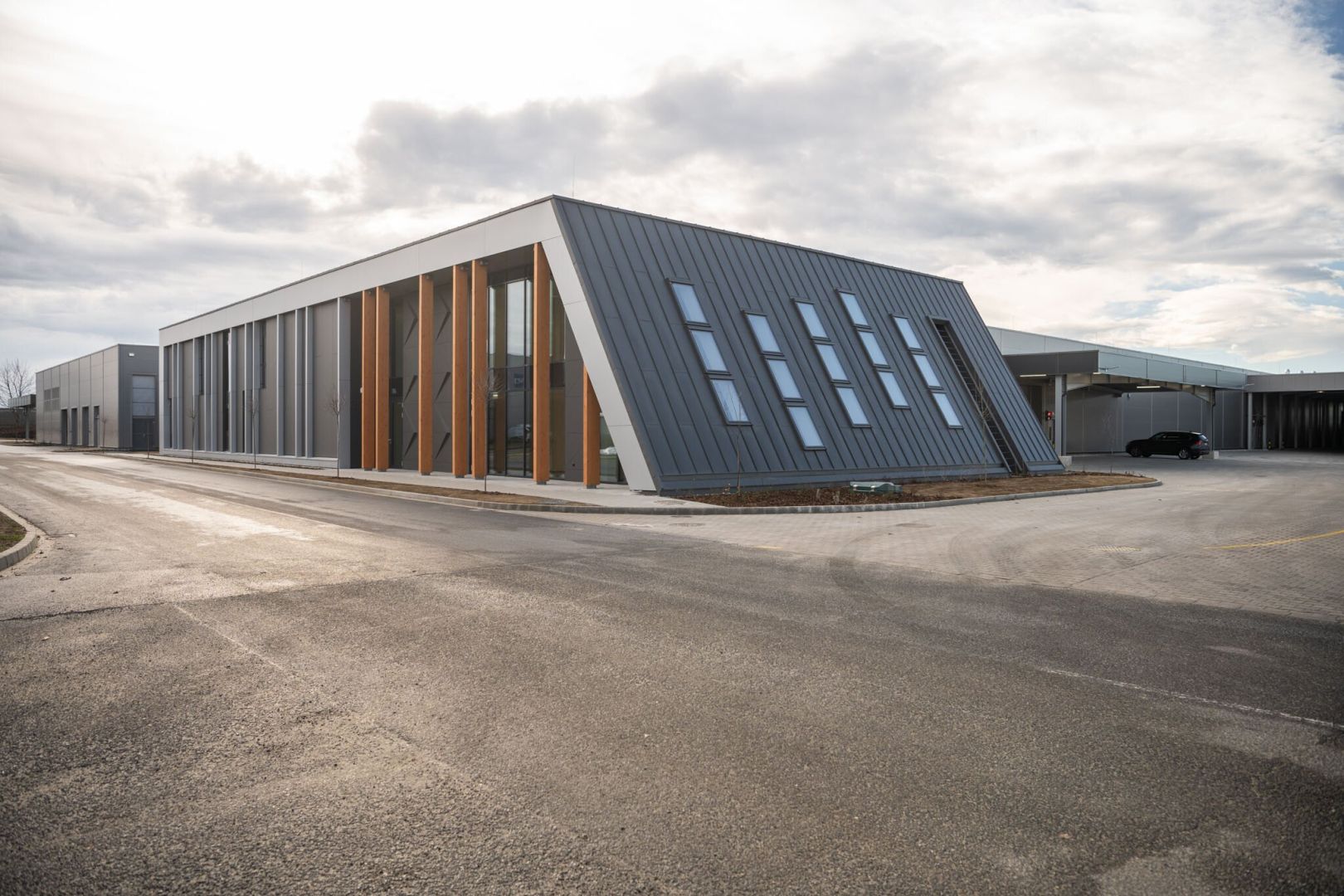 Velux GP4 csarnoképület Prefabond homlokzati burkolatok kivitelezése